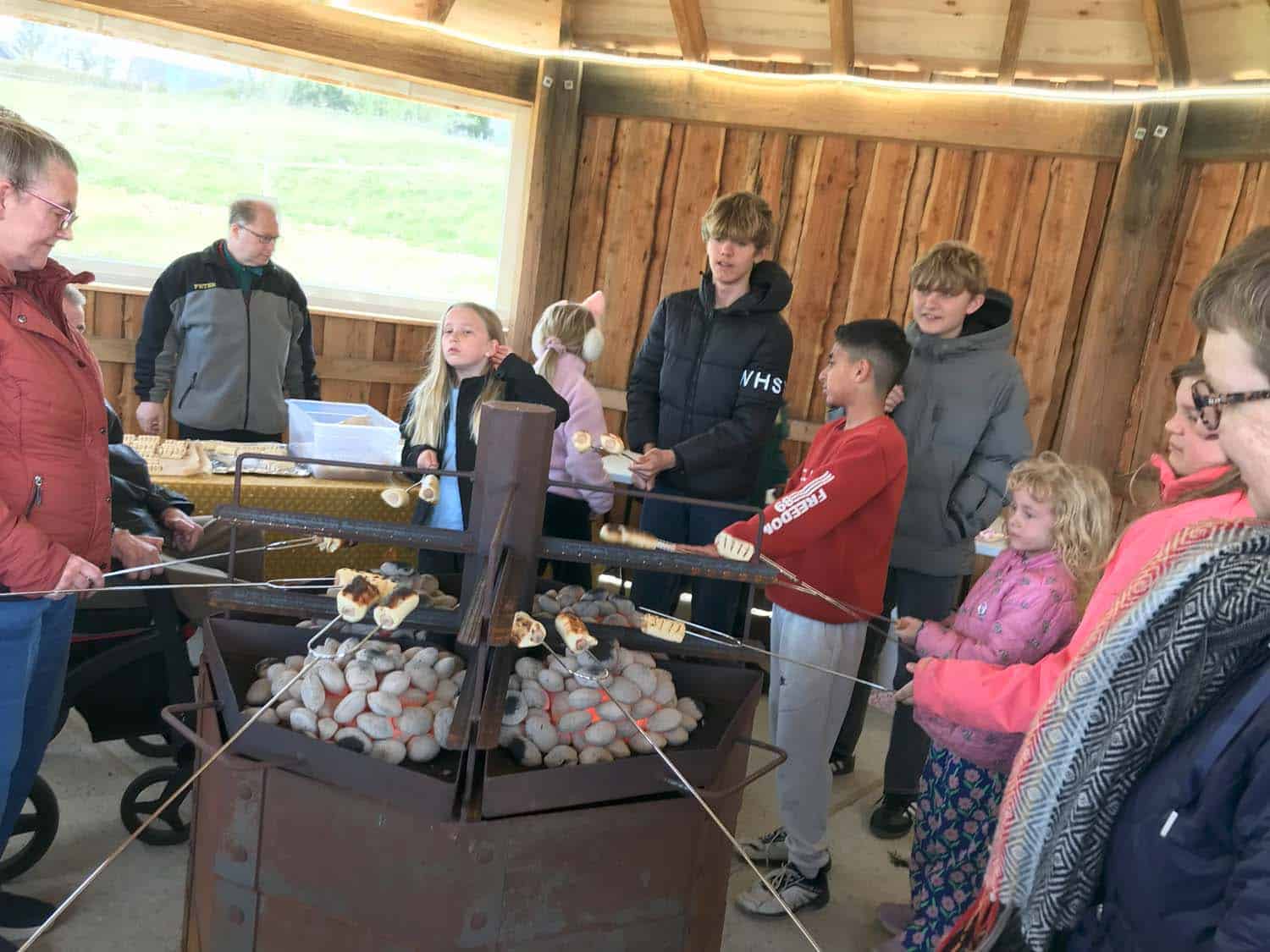 - Bålhytte med udekøkken og vandhane. I bænkene er snobrødspinde, pander, gryder og popkornsnet til fri afbenyttelse. Bålhyttens bålsted er til grillkul, som man selv bedes medbringe.