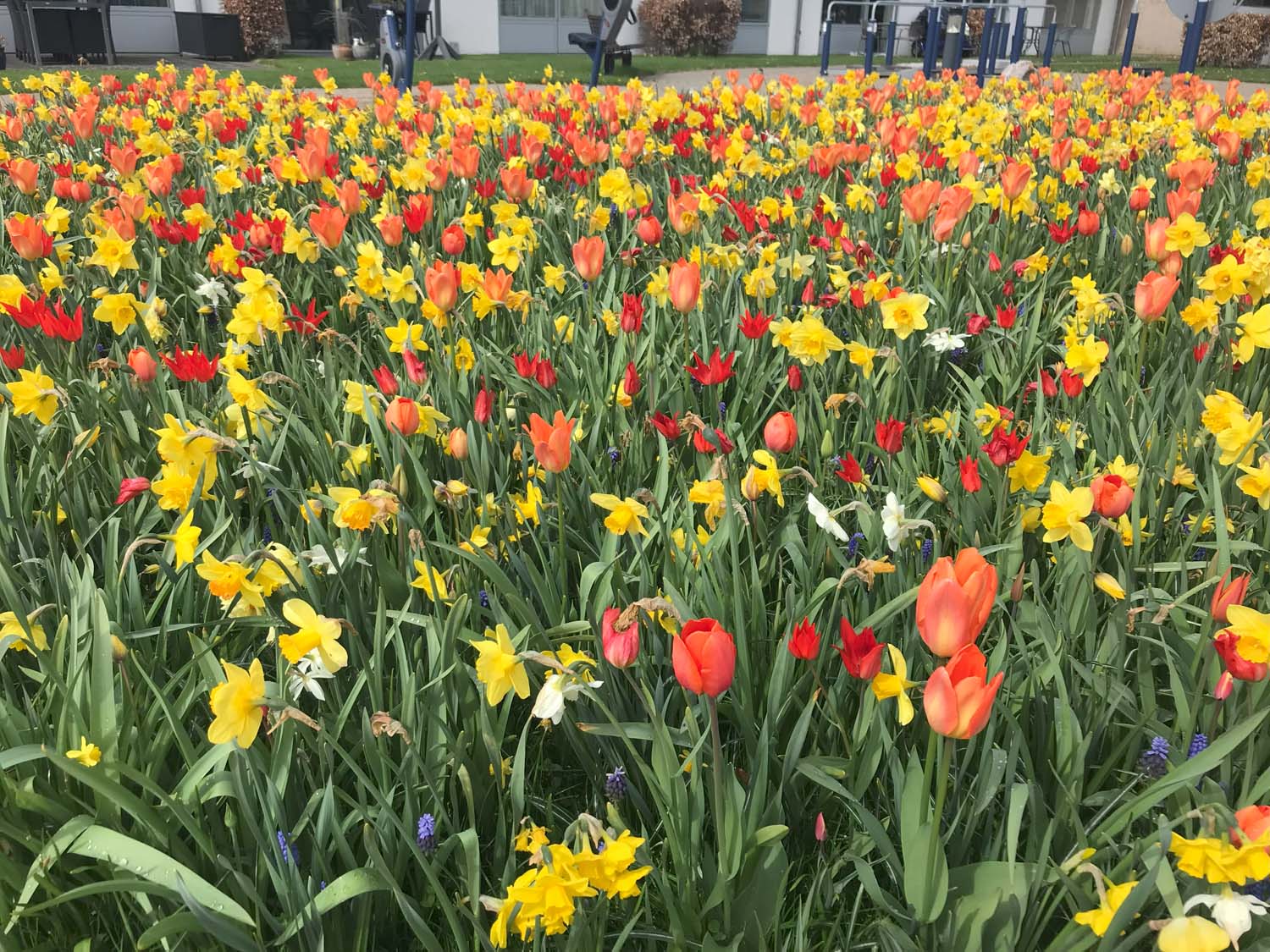 Hele haven er anlagt med handicapvenlige stier belagt med fliser eller stenmel.